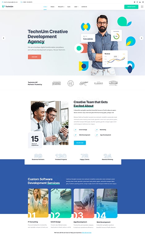 Technum WordPress Theme includes more than 100 wonderful elements for building different creative pages and blocks for your website